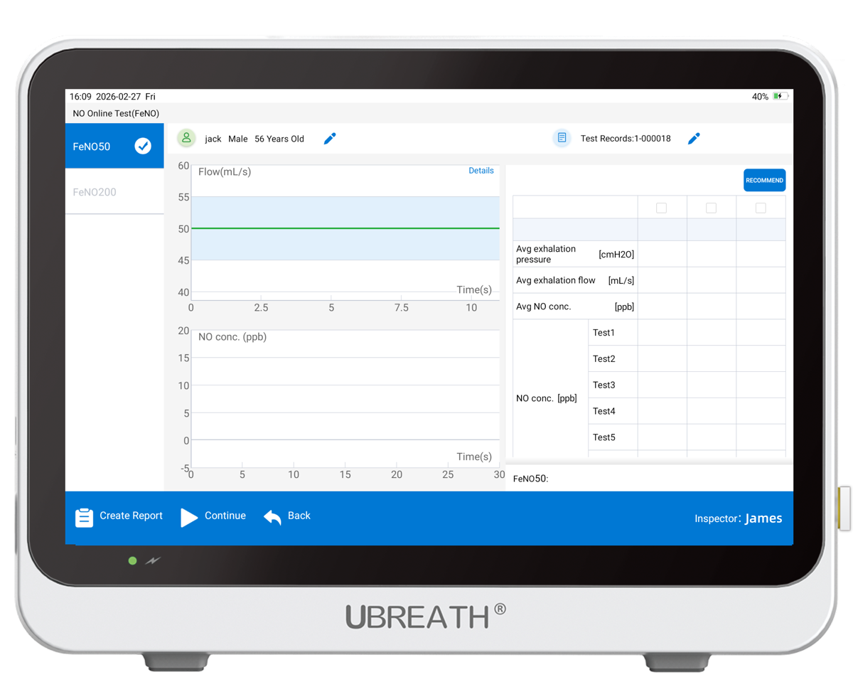 Designed for non-invasive point-of-care assessment of airway inflammation, this device combines high-sensitivity biosensor technology (0.1 ppb) with full ATS/ERS compliance. It delivers multi-parameter results—FeNO, CaNO, FnNO—in under one minute, while a patented dual-channel design ensures complete protection against cross-contamination.